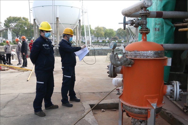 3月初,湖北省特检院直属分院得知金澳科技6台球罐需腾空物料、置换进行定期检验后,为减少对企业生产物料存储和连续性生产造成影响,立即成立以曾一彪检验师为组长的项目部,主动热情为企业提供服务,并到检验现场商讨腾罐计划,决定采取逐台倒罐、检验师连续加班检验等方式满足企业生产所需,公司总裁助理郑经友、设备机动处处长郑玉兵配合检定。