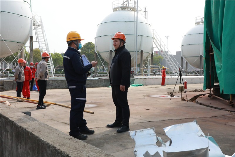 在曾检验师的现场指导下,球罐检定准备立即展开。3月20日,他开始驻厂对两台球罐进行检验,时刻关注球罐的检修质量和进度。检定期间,曾检验师发现又有一台球罐具备检验条件,立即申请院领导增派两名检验师到现场进行会战,确保了企业安全生产。