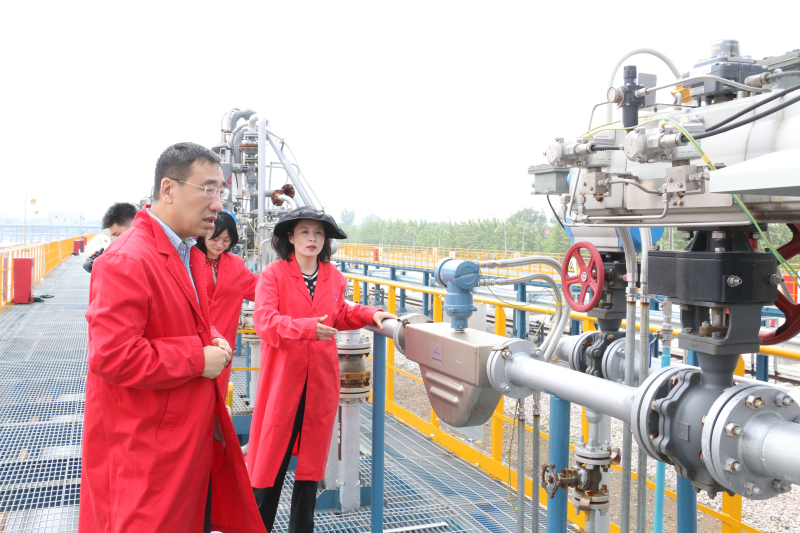 金澳科技张红副总裁陪同高总经理一行参观考察了油品升级深加工系列项目现场,详细介绍了金澳科技生产经营、重点项目建设及物流通道保障等情况。