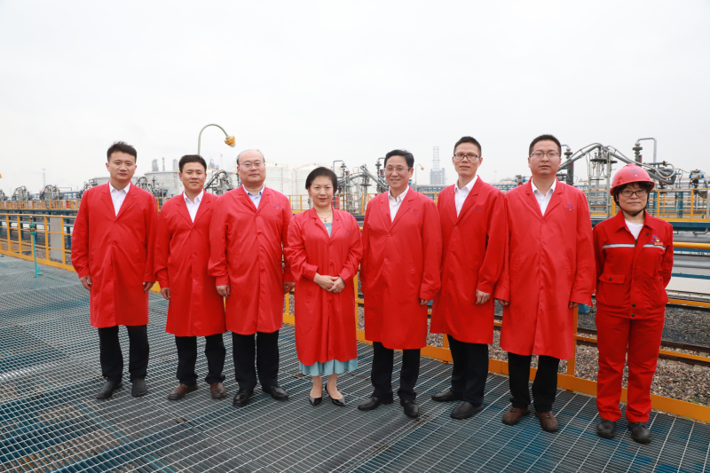 舒方副总裁陪同中化六建领导一行实地参观了金澳科技铁路专用线、重整装置、收发油平台,并详细介绍了公司生产经营、项目建设、企业文化等相关情况。