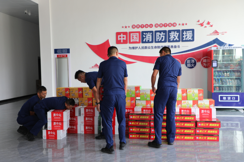 7月26日,金澳科技副总裁吴时斌、杨巍一行到潜江市消防救援大队看望慰问,向长期保护人民生命财产安全的消防队员致以崇高敬意,并送上夏季防暑降温物资。