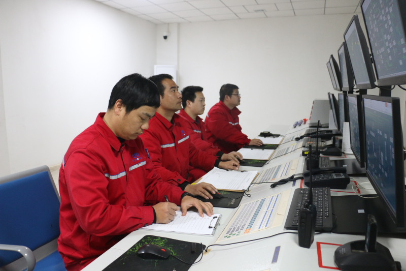 异辛烷车间副主任胡烨在主控室检查装置各项工艺指标数据,确保生产稳定运行。