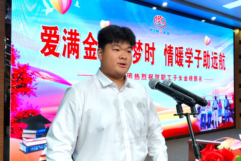 金澳集团执行总裁吴让生对学子们“金榜题名”表示祝贺,并以“筑梦奋进 共赴新程”为主题发表了鼓舞人心的讲话。他表示,公司每年举办“金秋祝学”活动,不仅是为了将金澳科技真挚的关怀传递给每一位员工及其家庭,更是为了拉近企业与员工之间的心灵距离,共同编织一个更加紧密、温馨的大家庭。通过这一活动,员工家属能够深刻感受到金澳科技独特的企业文化,共同推动金澳科技高质量发展。